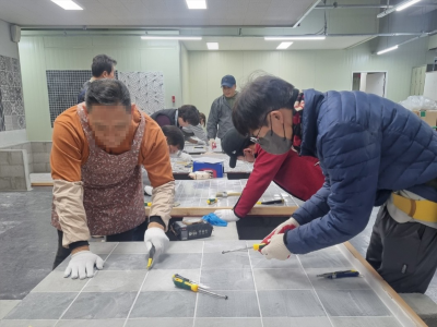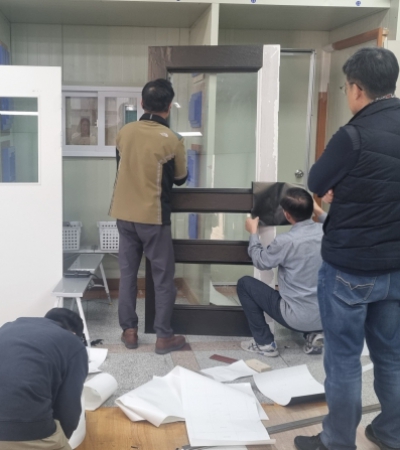 도배 수업의 마지막 과정으로 기계작동법을 익히고,
